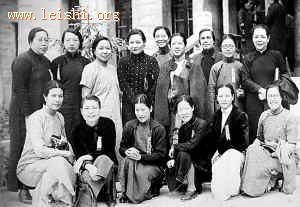 1938年,雷洁琼(后中)参加庐山妇女座谈会(二排左四为宋庆龄)